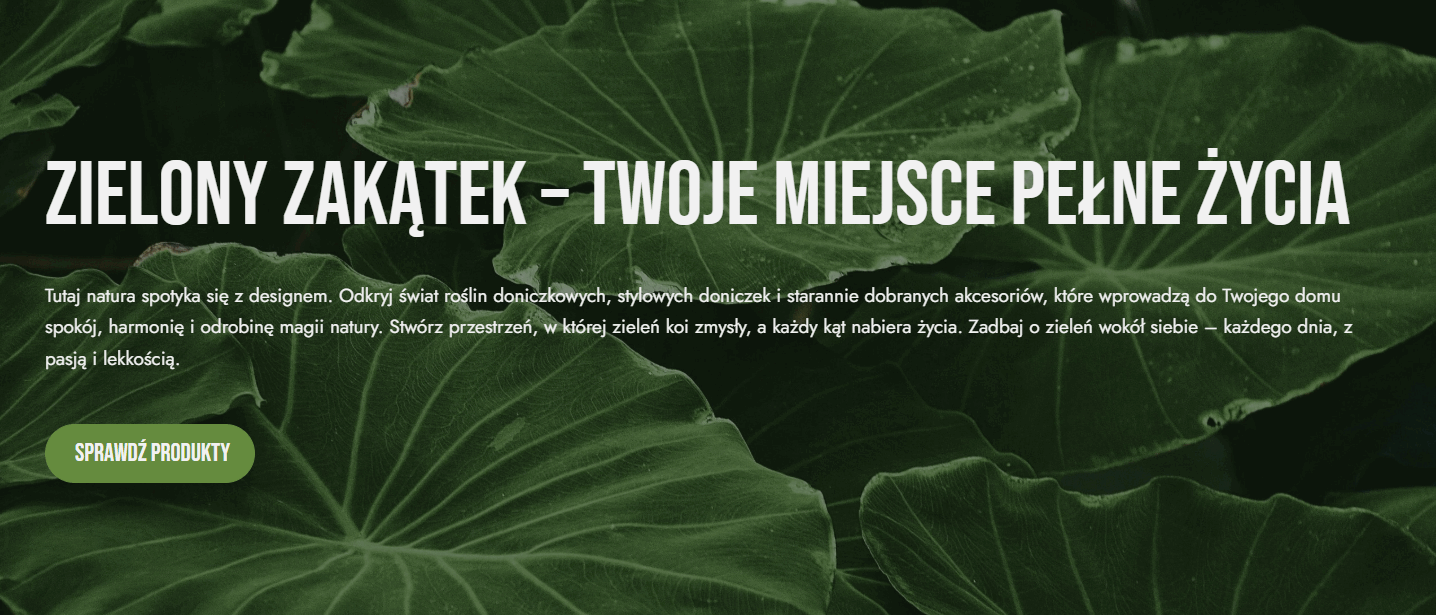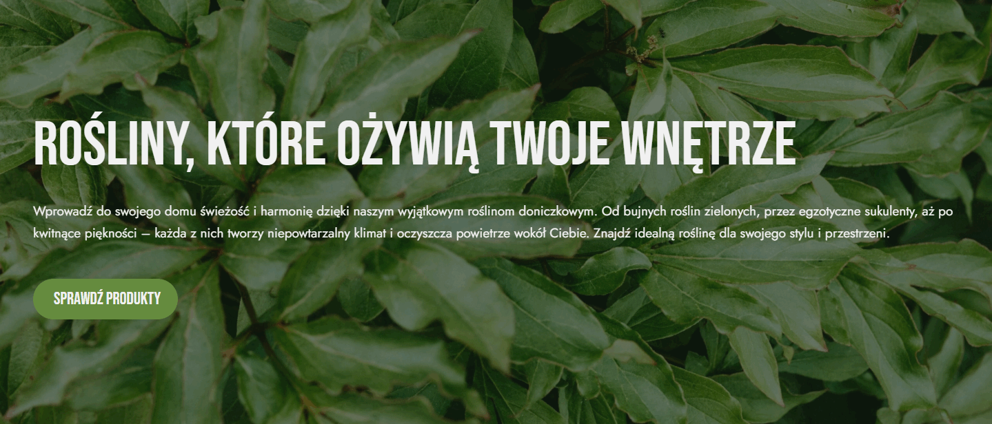 Wprowadź naturę do swojego domu dzięki naszej kolekcji roślin doniczkowych. Od egzotycznych liści po delikatne sukulenty – każda roślina wnosi świeżość, harmonię i spokój. Stwórz miejsce, w którym zieleń staje się częścią codzienności. Z Zielonym Zakątkiem pielęgnujesz nie tylko rośliny, ale i dobrą energię.