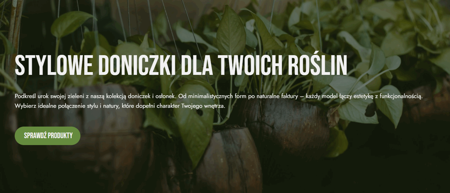Stylowe doniczki i osłonki, które podkreślą piękno Twojej zieleni. Wybieraj spośród naturalnych materiałów, delikatnych pasteli i nowoczesnych form. Połącz funkcjonalność z estetyką i stwórz wnętrze, w którym design spotyka naturę. Z Zielonym Zakątkiem każdy detal ma znaczenie.