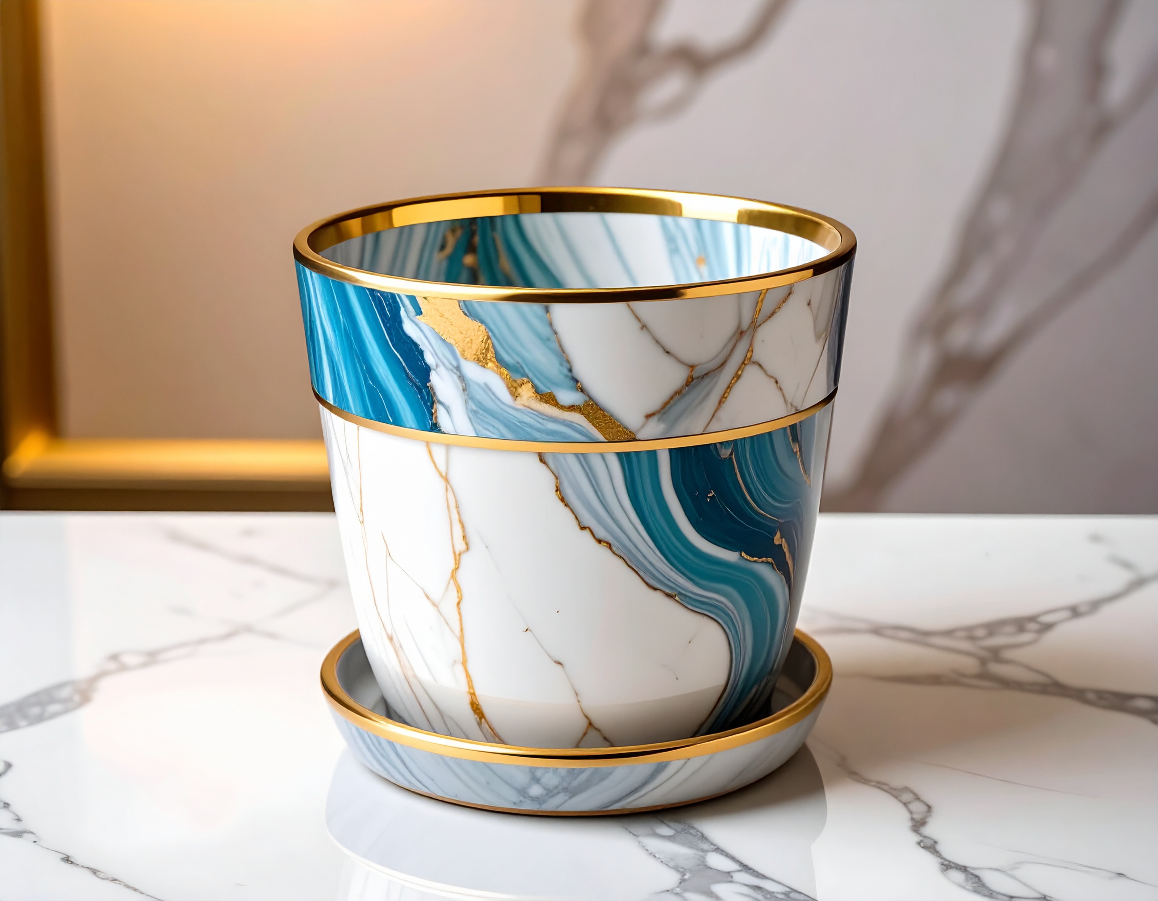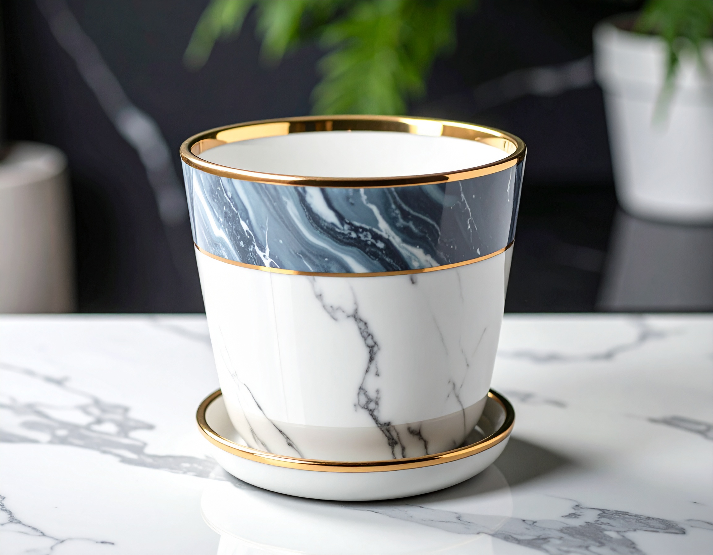 Elegancka doniczka imitująca marmur.