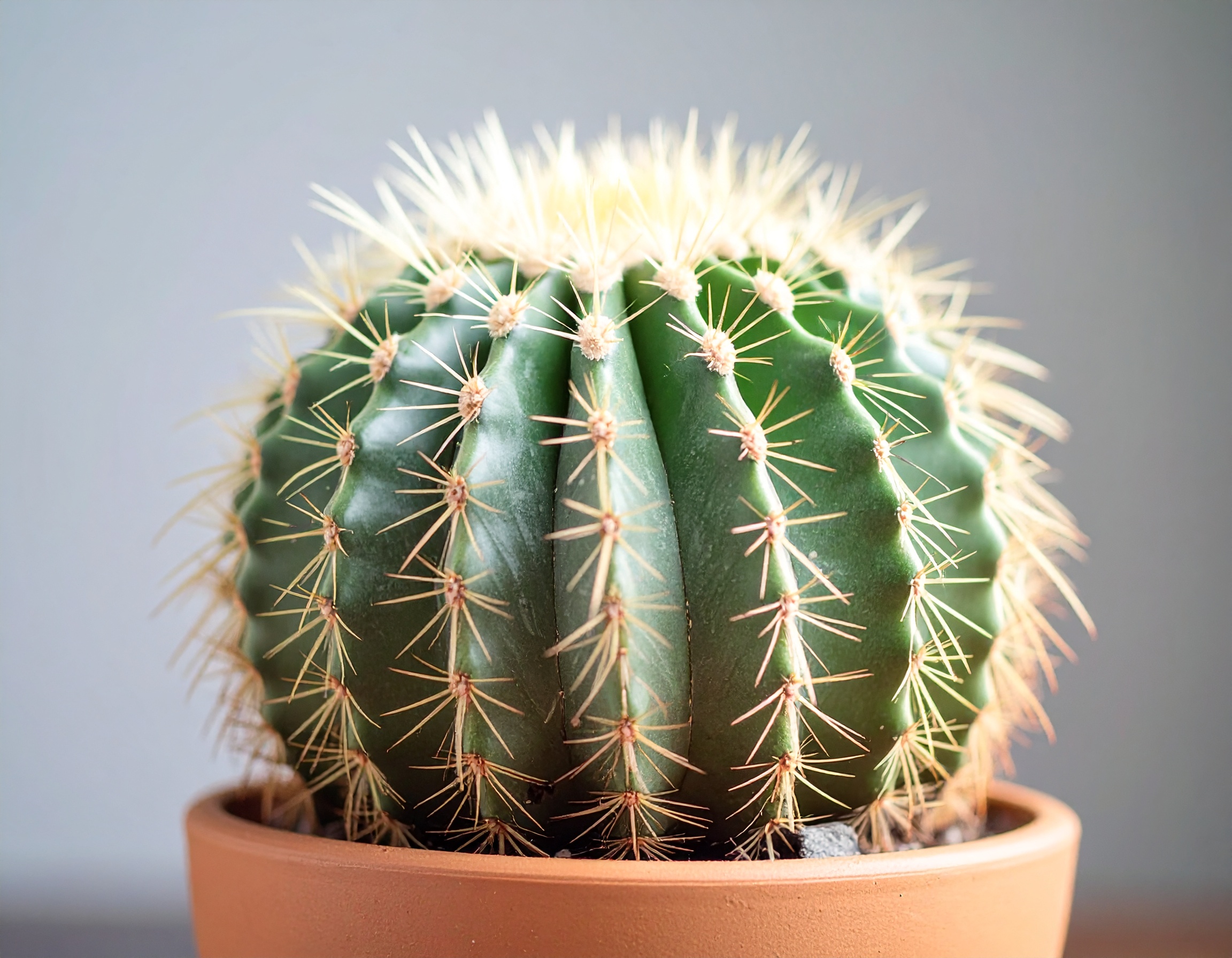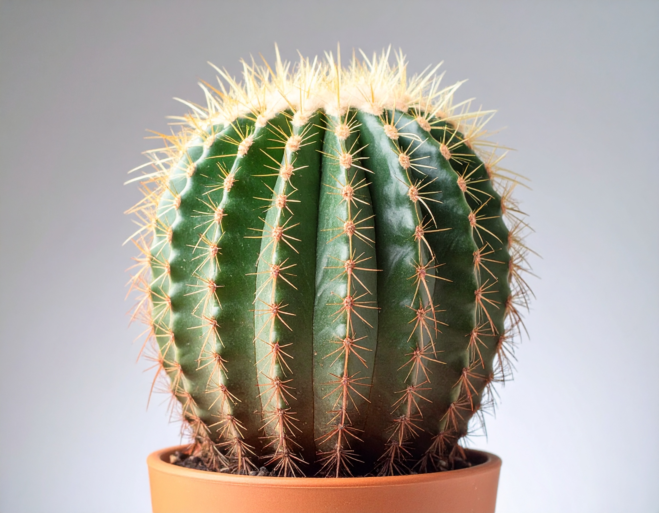 Efektowny, kulisty kaktus o gęstych, złocistych kolcach. Doskonały do nowoczesnych i minimalistycznych wnętrz.