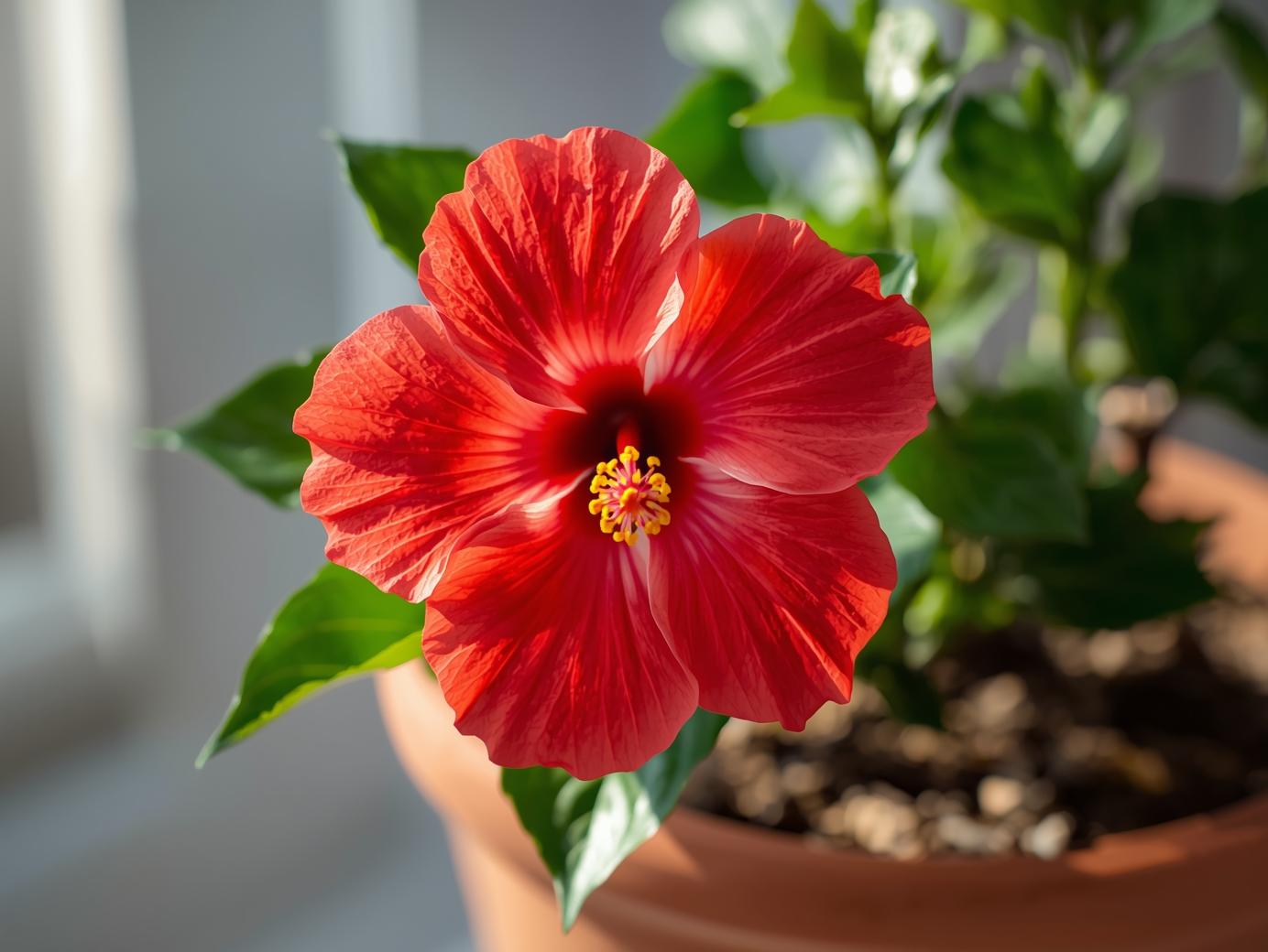 Hibiskus oczyszcza powietrze z toksyn i świetnie nadaje się do salonu lub oranżerii. Nie jest polecany dla domów ze zwierzętami — jego liście mogą być lekko toksyczne po zjedzeniu.